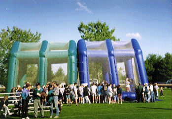 ![]() Non-stop action awaits you in our new DEFENDER DOME™. Defend your goal against the three other players in the fastest moving inflatable game ever created. Four Players face off against each other on an angled surface with a goal of their own to defend against any of the other players from any direction attempting to score on your goal. UNBELIEVABLE FUN! Dimensions Safety is our #1 Priority! Inspected and certified by Massachusetts Department Of Safety. Our staff is trained to provide excellent planning and support for all types of events and functions. | |